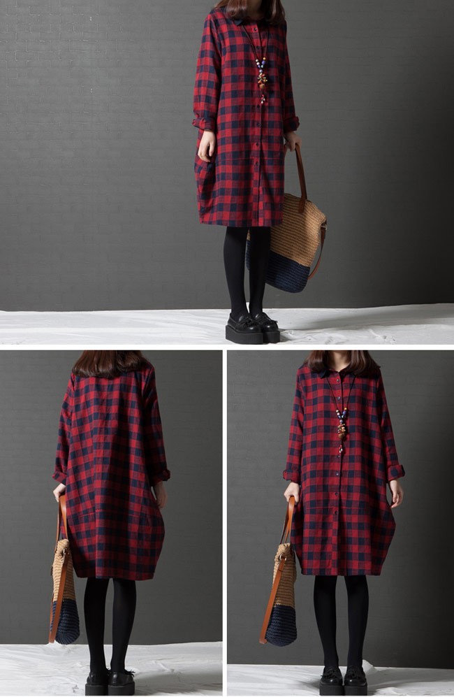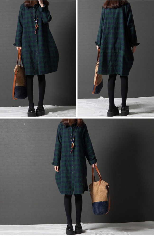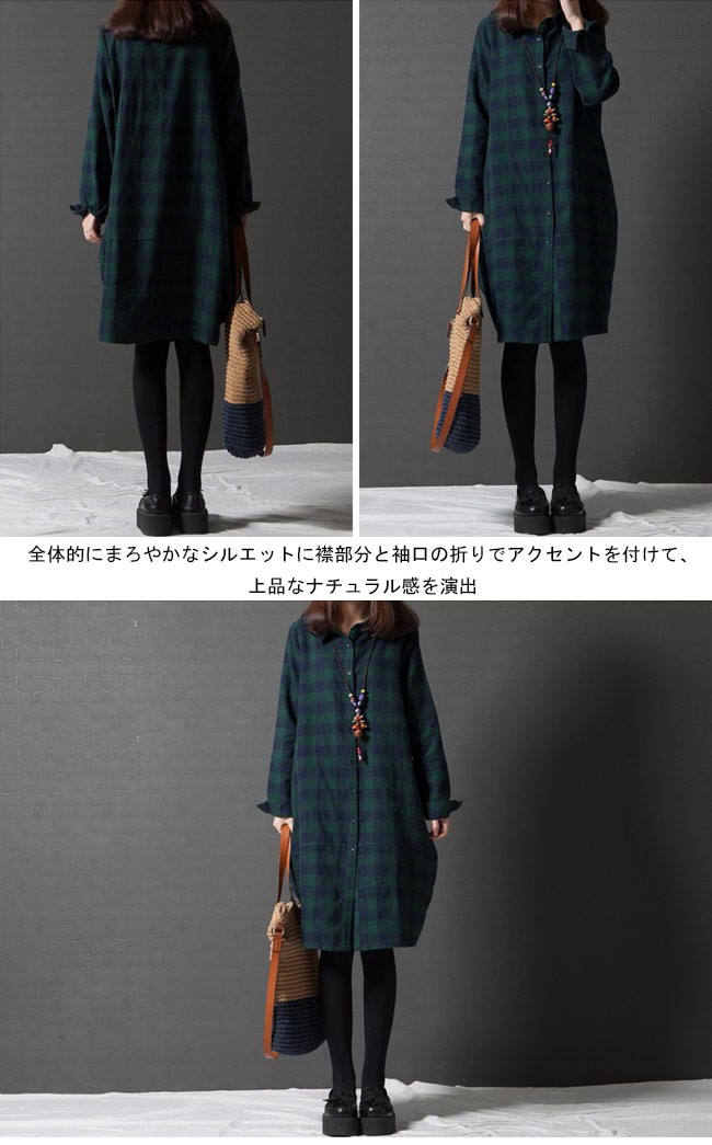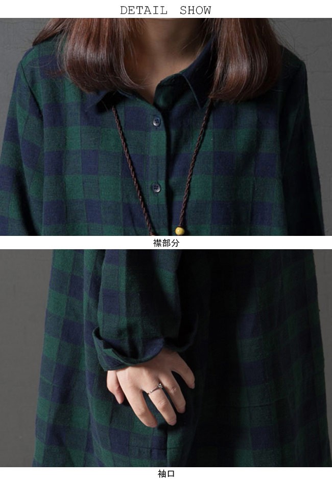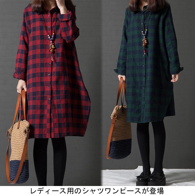 | 商品名 | レディース シャツ ロング丈 折り襟 長袖 チェック柄 女性用 大きいサイズ トップス 着まわし ブラウス 体型カバー ポケット付き |