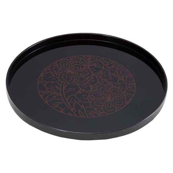 普段使いにぴったりの落ち着いた牡丹をあしらった山中塗丸盆です。