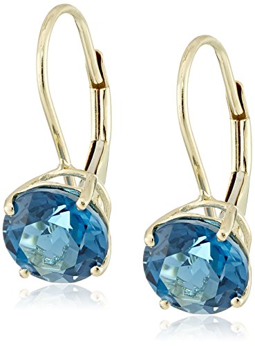 -. Title : 10k Yellow Gold London Blue Topaz Round Lever Dangle Earrings