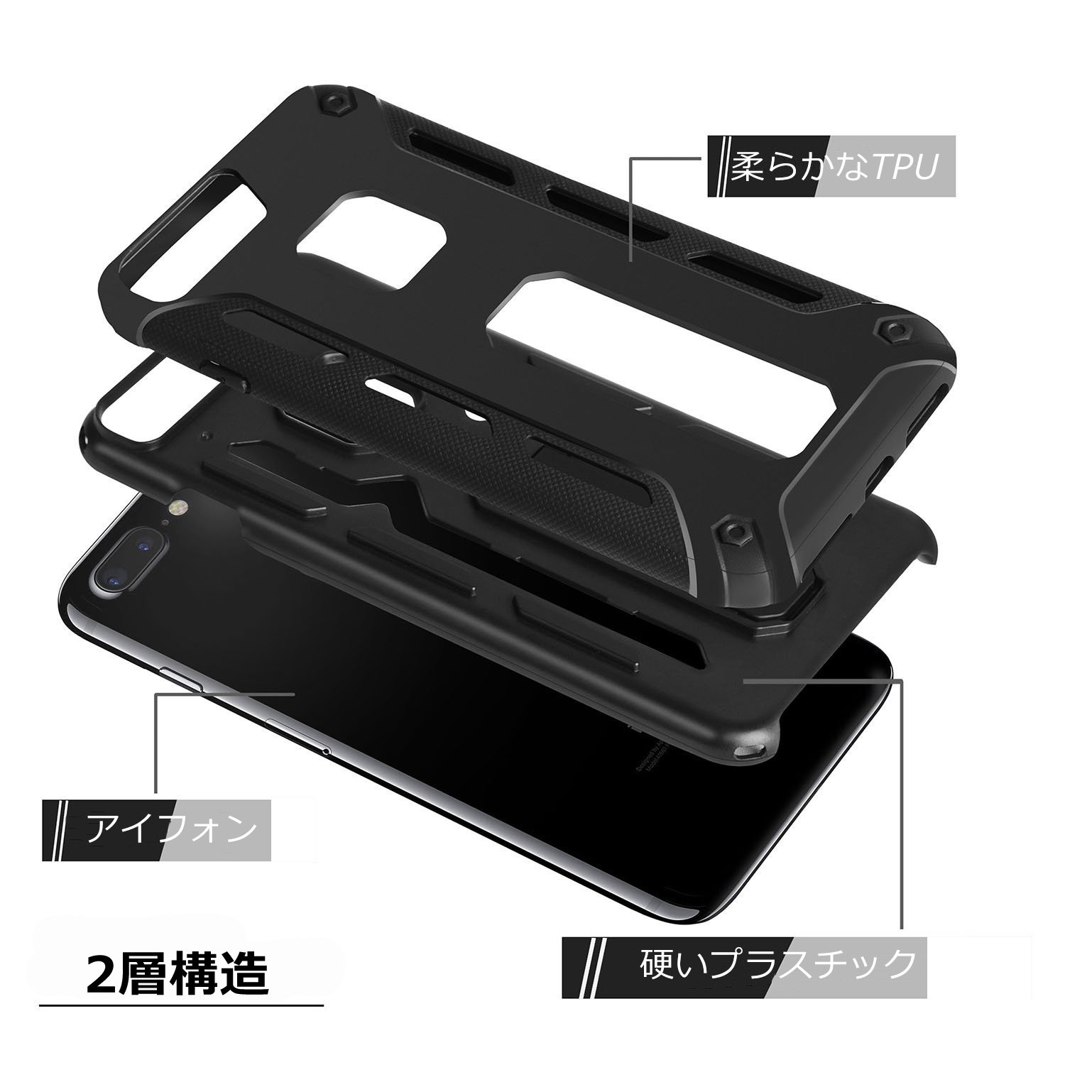 It adopts a hard plastic + pliable TPU 2 layer structure and realizes excellent impact resistance while being lightweight.