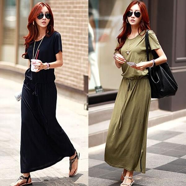 Tシャツ ロング丈 ワンピース 半袖 黒 ブラック カーキ