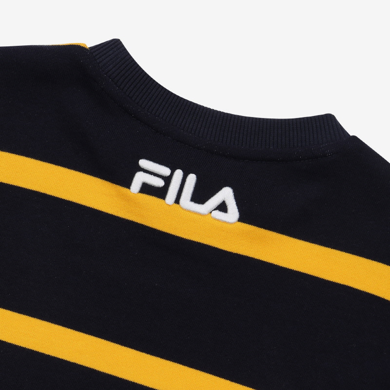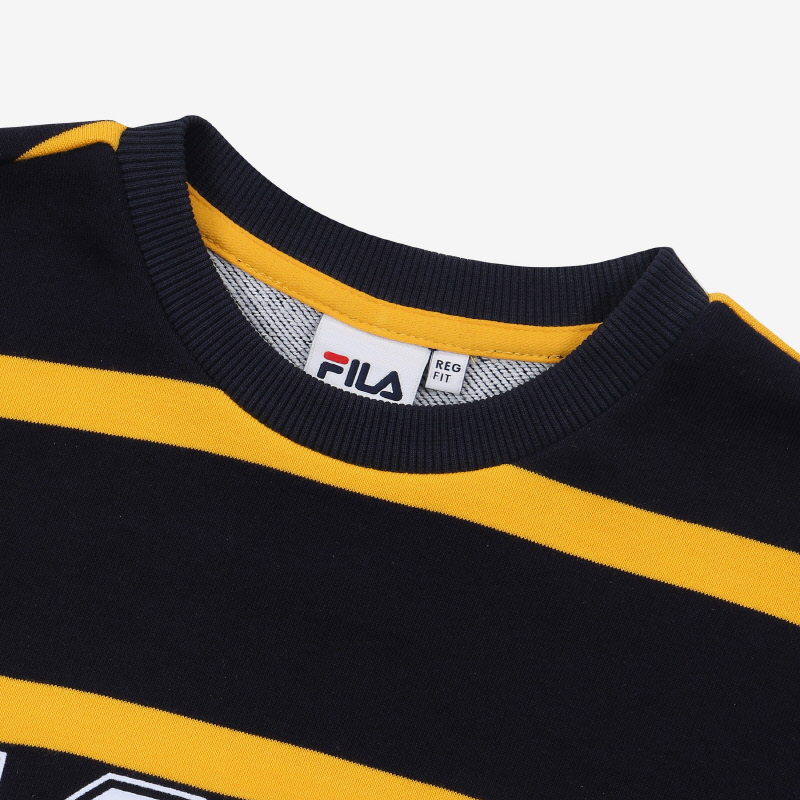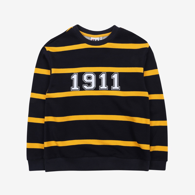FALL 시즌 `1911` 스트라이프 맨투맨으로 `올드스쿨` 컨셉 아이템착용감이 우수한 면/폴리 소재로 부드러운 터치감과 활동성 우수한 기능성 소재 사용스트라이프 줄 넓이를 다르게 준 트렌디한 디자인이며, 가슴 중앙에 FILA 탄생연도 `1911` 숫자를 프린트로 포인트루즈핏으로 기존 스트라이프 맨투맨과 달리 세련 된 디자인