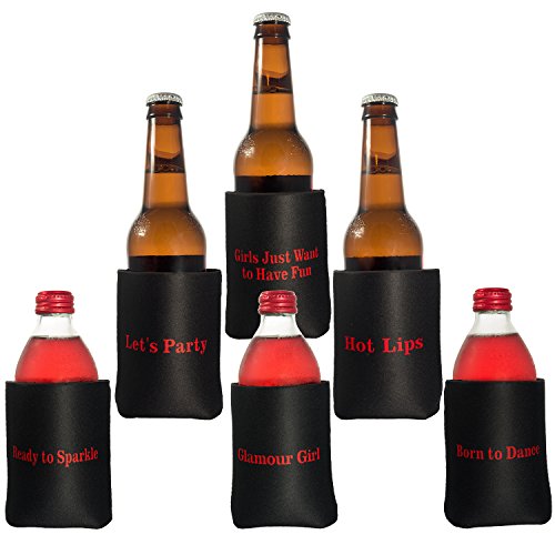 Collapsible Can Bottle and Beer Koozies quality extra 5mm thick neoprene insulated coolers perfect for girls parties hens and bacholerette nights, BBQ's and sorority parties. Great as a gift.