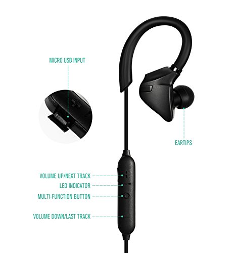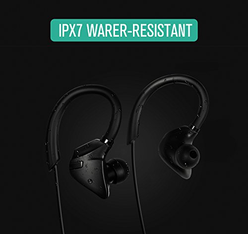 Bluetooth Headphones, Nekteck Bluetooth 4.1 Stereo Wireless IPX7 Earphones Headset Earbuds, Sweat-proof, Water-Proof, Secure Fit for Sport, Gym with Built-in MIC, CVC 6.0 Noise-Cancelling - Black