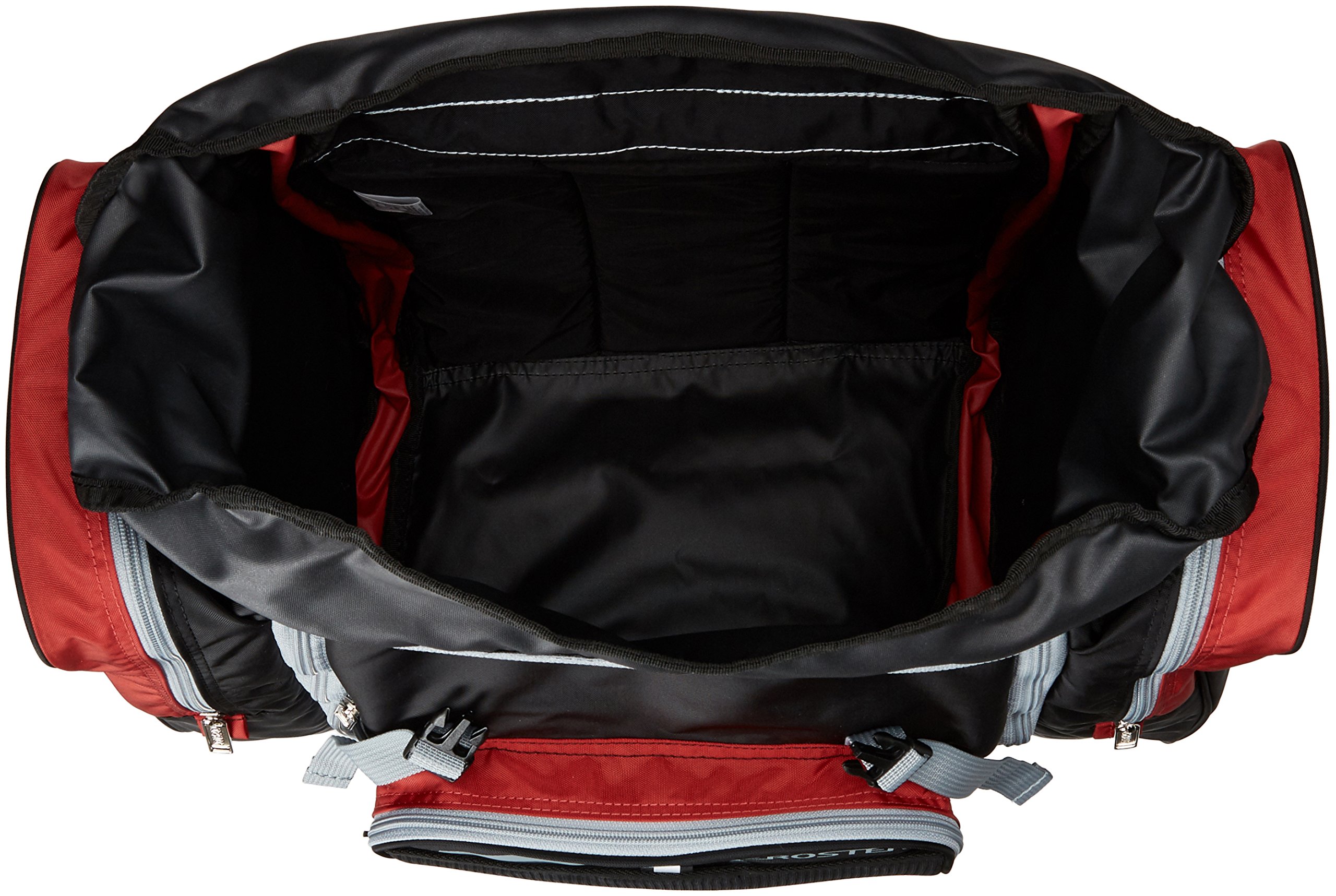 With the accordion system, filling in the name on the back side of the cover that can increase the capacity from 40 L to 50 L by opening and closing the fastener