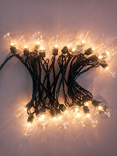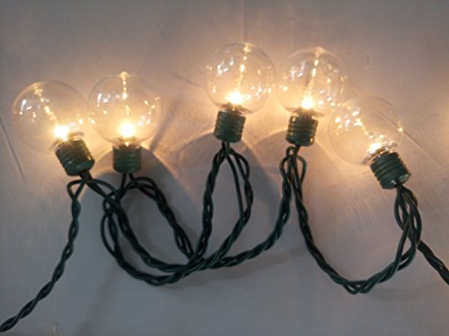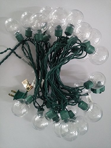 - 25 Light G40 String Lights With Clear Bulb, Green Wire with end Connect