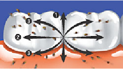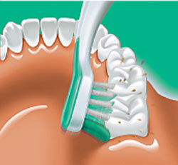 ![]() | 1. 歯間の歯垢にタテ磨き 2. 歯ぐきの境目にヨコ磨き 3. 歯間のデルタにナナメ磨き |