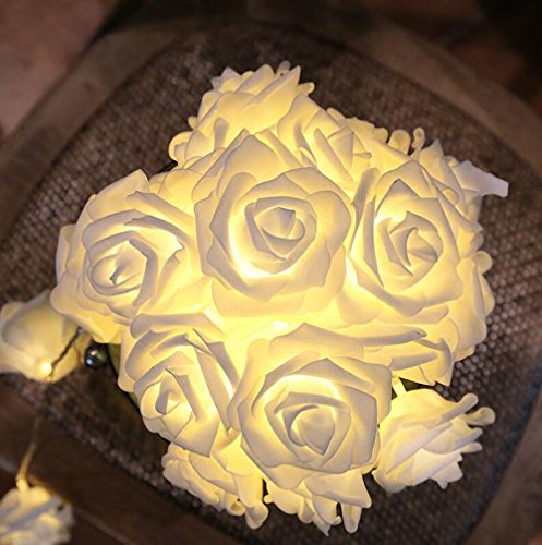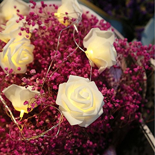 HanYun 2.5M /8ft 20LED String Lights Bright Warm Rose Flower Lamp Fairy Light Wedding Gardens Party Christmas Decoration - Warm White