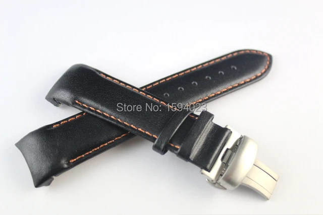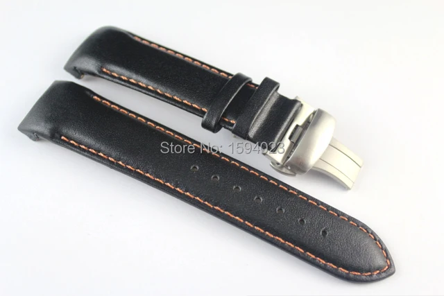 | [해외]22 미리메터 T035407 T035410 높은 품질 실버 나비 버클 오렌지 스티치 블랙 부드러운 정품 가죽 손목 T035 스트랩 |