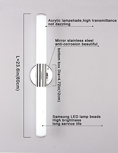 Bathroom LED vanity light 12W indoor Wall Sconces Mirror Vanity Lighting Fixtures Stainless Steel and Acrylic Bedside lamp Aisle lights, 23.6'' Daylight white 5800K