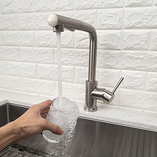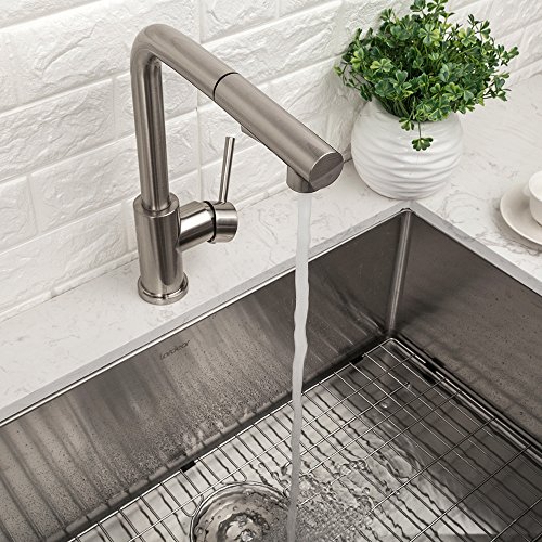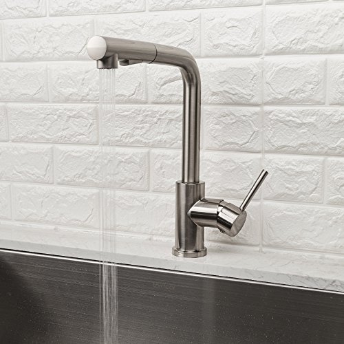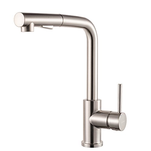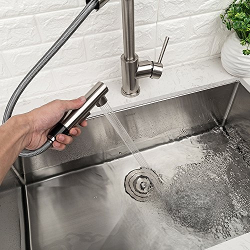 LORDEAR Modern Style Stainless Steel 2 Water Function Setting Single Handle Pull Out with Sprayer Wet Bar Brushed Nickel Kitchen Faucet, Pull Down Kitchen Sink Faucet