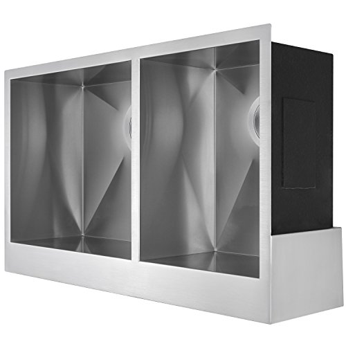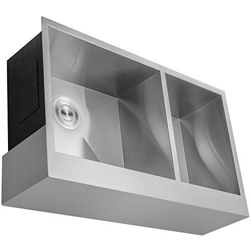 Perfetto Kitchen and Bath 33" x 20" x 9" Handmade Apron Undermount Double Bowl 18 Gauge Stainless Steel Kitchen Sink with Drain and Dish Grid