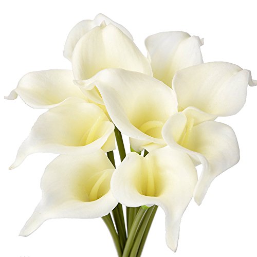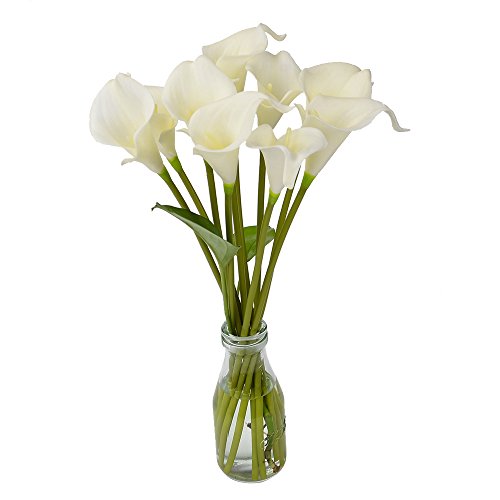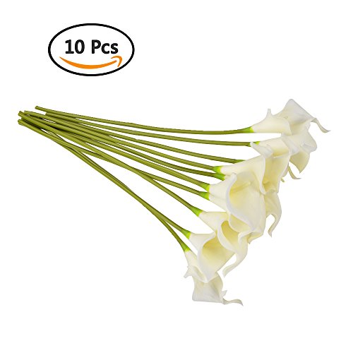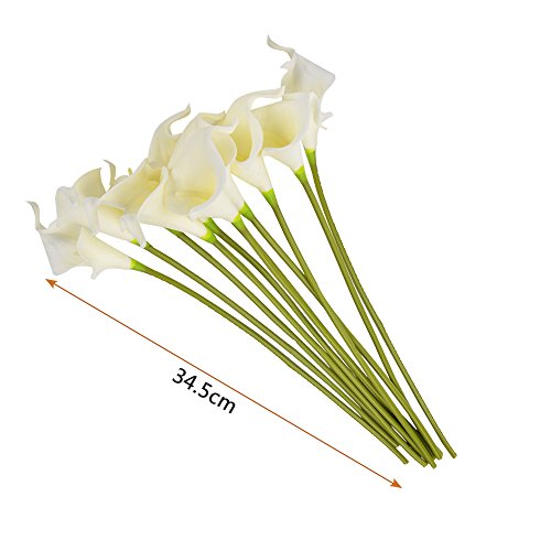 ATPWONZ 10pcs Calla Lily Artificial Flowers Wedding Bridal Bouquet Latex Real Touch Home Party Decoration (White)