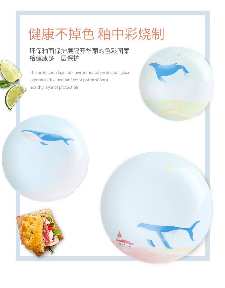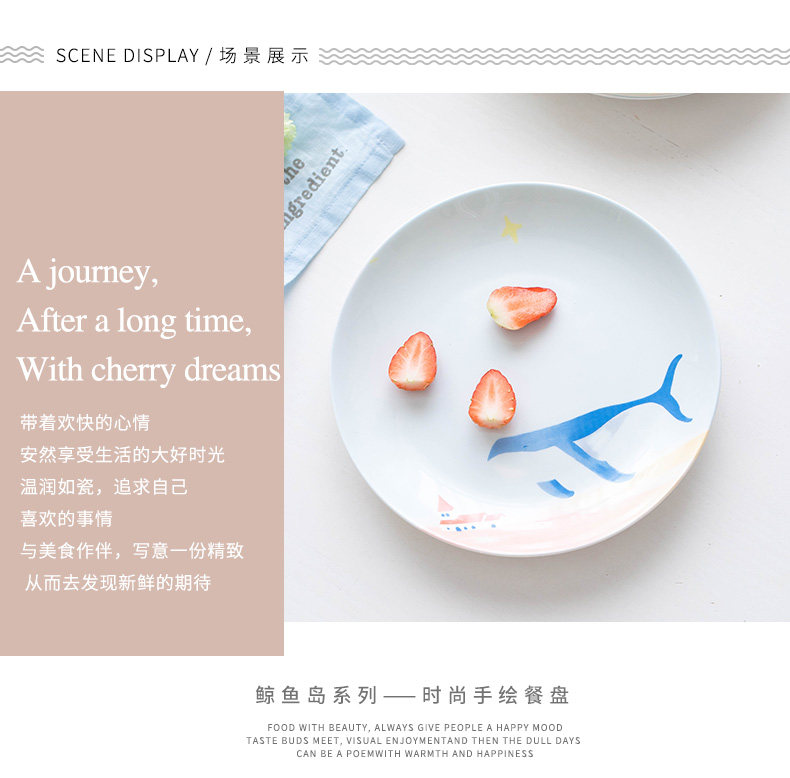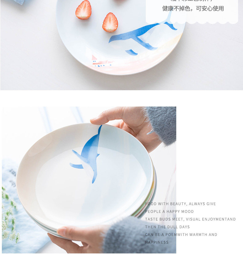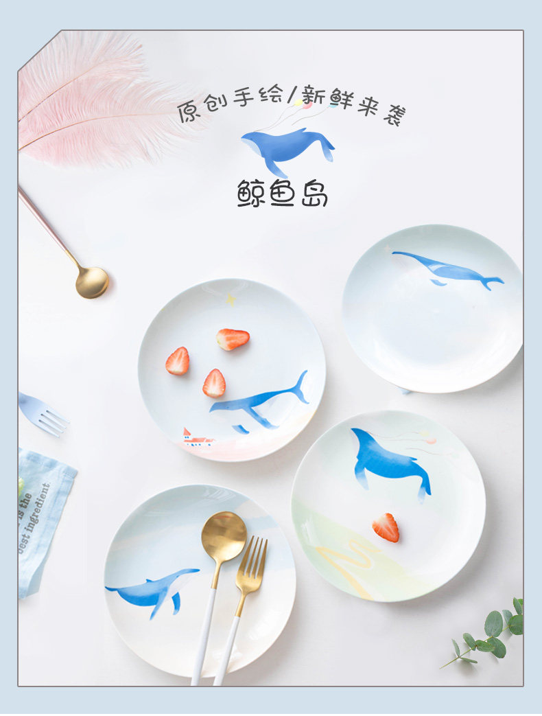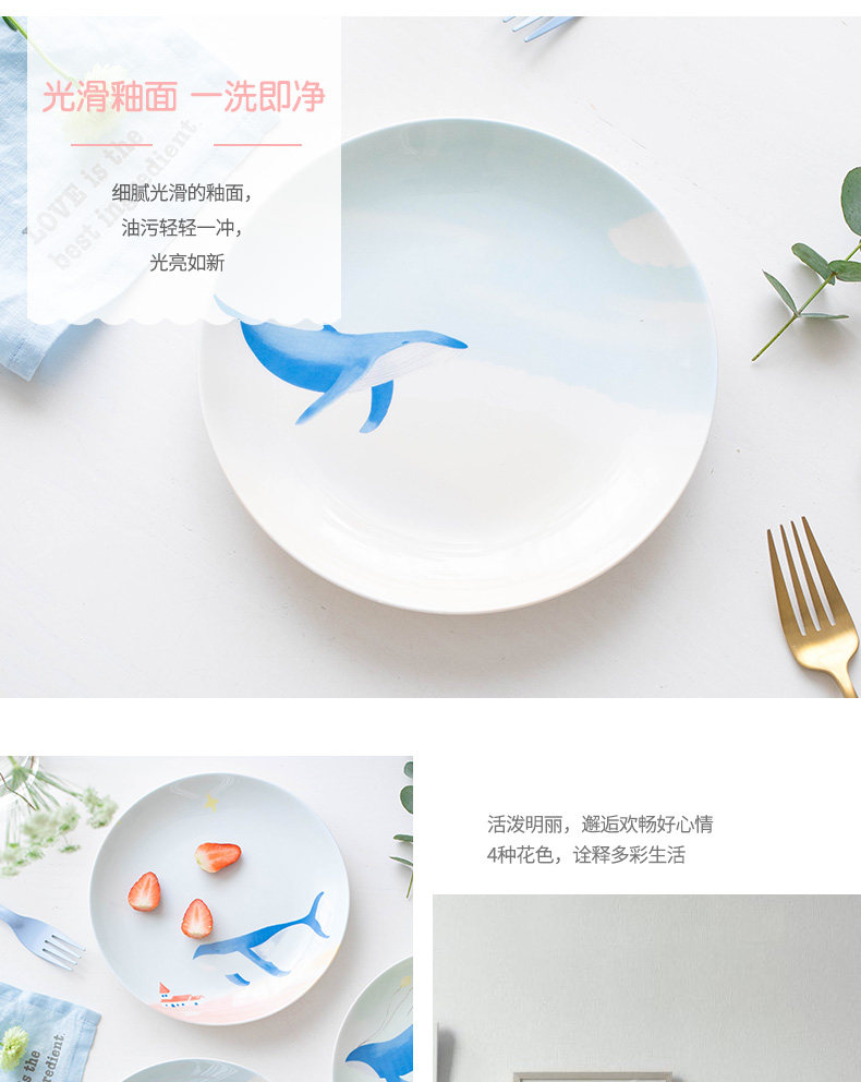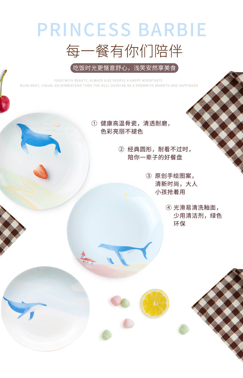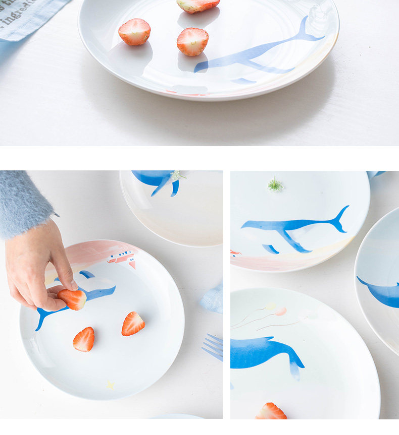 碟子盘子家用手绘西餐盘餐具创意骨瓷牛扒盘卡通个性餐盘