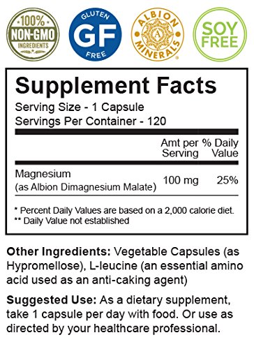 MagPure Malate delivers 100 mg of pure elemental magnesium malate per capsule using minimal other ingredients and utilizes the highly bioavailable form, Dimagnesium Malate, exclusively from Albion Labs.