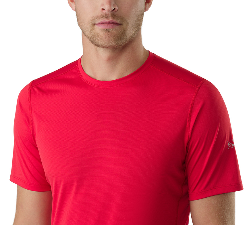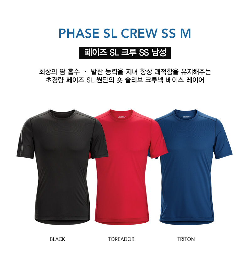 최상의 땀 흡수 · 발산 능력을 지녀 항상 쾌적함을 유지해주는 초경량 페이즈 SL 원단의 숏 슬리브 크루넥 베이스 레이어