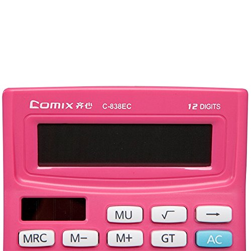 ►12-Digits Plastic buttons Plus UV varnish surface, wear, durability, tap more comfortable Extra large easy-to-read big display Constants for +, - , x, ÷ Independent memory Mark-up, percent, P key, Profit Margin 3-digit comma markers Solar power supply with button battery.
