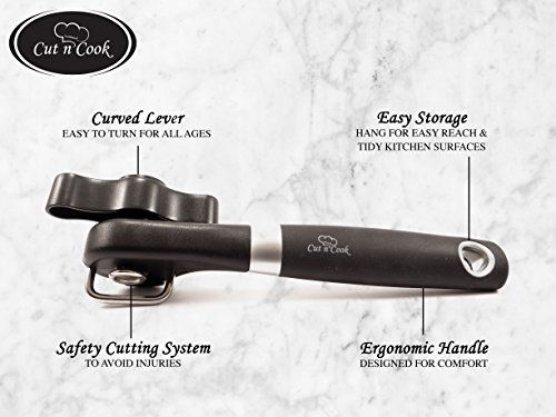 Cut n Cook Can Opener Manual Safety Smooth Edge Side Cutting Tin Opener No Sharp or Jagged Edges Easy to Use Ergonomic Heavy Duty Anti Slip Handle Stainless Steel No Rust Cuts Large and Small Cans
