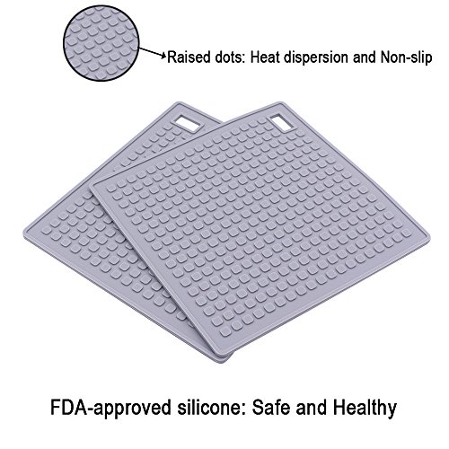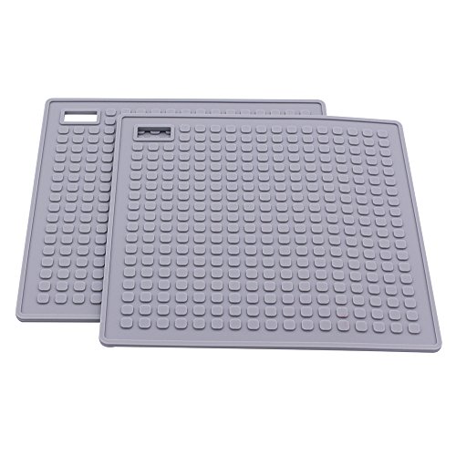 iBostom Silicone Trivet - Set of 2- Use as Pot Holder, Trivet Mat, Hot Pad, Gray, 7 x 7inch