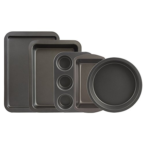 Range Kleen BW9 Non-stick Bakeware 5 Pc. Set: Medium Cookie 11.5 x 17 inches, Roasting Pan 9 x 13 inches, 6 Cup Muffin 10.5 x 7.13 inches, Loaf Pan 11 x 5.75 inches, and Round Cake Pan 9 inches