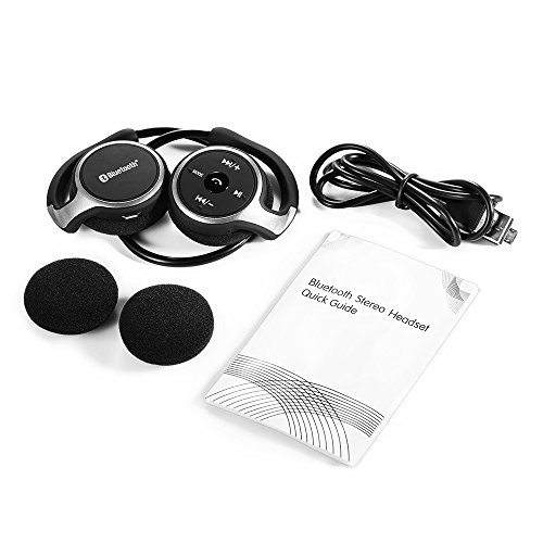 Feature : Bluetooth 4.1Version, high quality Bluetooth chip--clear stereo sound quality and stable signal transmission. / Upgraded Headset with TF Card Slot, support 32GD Card, Playing as a MP3, need no any other mobile devices. / With FM function- as a Radio, just need press the" Mode" Key to switch, easy to operate. / With sponge covers, flexible neckband, soft and comfortable wearing. / Durable polymer-li battery,provide playtime up to 5 hrs ,stand-by time 112 hrs,talking/listening time 6hrs.Micro-USB charging port,more convenient for charging.