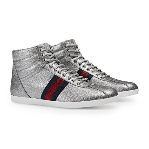 Binding : Apparel Product Description Gucci silver glitter fabric with blue and red Web detail. Founded in Florence in 1921, Gucci is one of the world's leading luxury fashion brands, with a renowned reputation for creativity, innovation and Italian craftsmanship. Gucci is part of the Kering Group, a world leader in apparel and accessories that owns a portfolio of powerful luxury and sport and lifestyle brands. 0