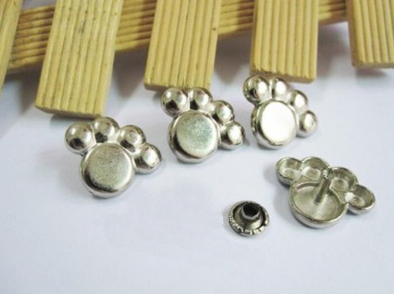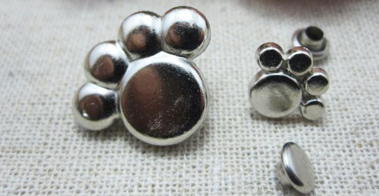 【20個セット】 かわいい 肉球 パーツ 小 カシメ リベット 金具 スタッズ 鋲 ハンドメイド 制作 材料 シルバーctr-d80【8~12日発送】