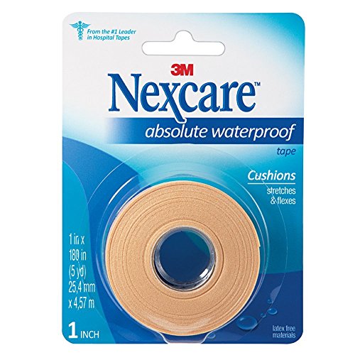 Nexcare Absolute Waterproof First Aid Tape, Cushioned Protection, 1-Inch x 5-Yard Roll (Pack of 6)
