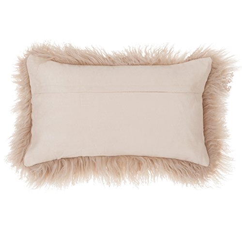 SLPR Mongolian Lamb Fur Throw Pillow Cover (12'' x 20'', Beige) | Real Fur Decorative Cushion Cover Pillow Case for Living Room Bedroom