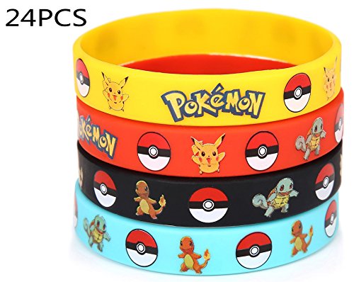 -. Feature : 4 Wonderful Colors in Red, Yellow, Blue, Black.6 of each color. / Bracelets are about 2-1 / 2 Dia and 1 / 2 wide , made of high quality silicone. / Designs include Poke Ball, Charmeleon,Squirtle,Pikachu and Pokemon Font Generator. / With an extensive selection of products for everyday entertaining, to birthday parties and beyond, look to Party Pail for your next event. / Fits most older children and adults.Bracelet favors stretch to fit most children's wrists.