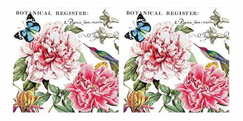 Michel Design Works 20-Count 3-Ply Paper 5"x5" Cocktail Napkins, Peony, Set of 2 Twenty Napkin Packs.