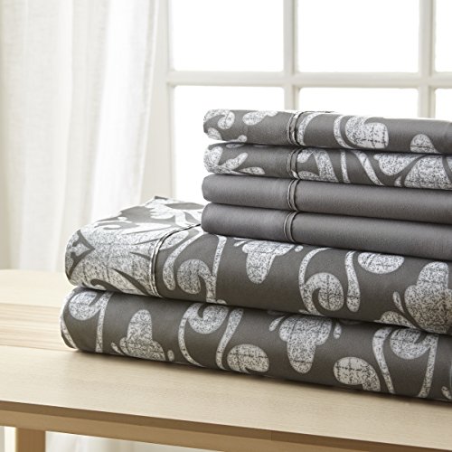 Spirit Linen, Inc Hotel 5th Ave Queen Grey Damask Bellagio Home Collection Sheet Set, 6 Piece
