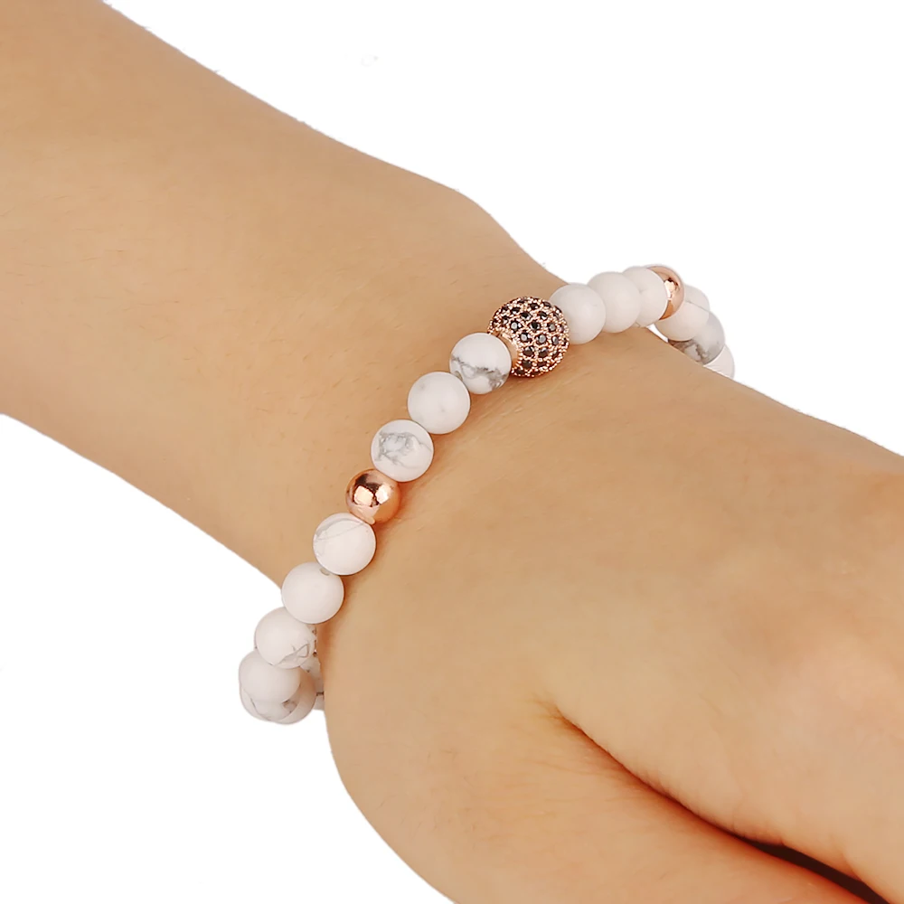 Material:white marble beads and micro pave beads