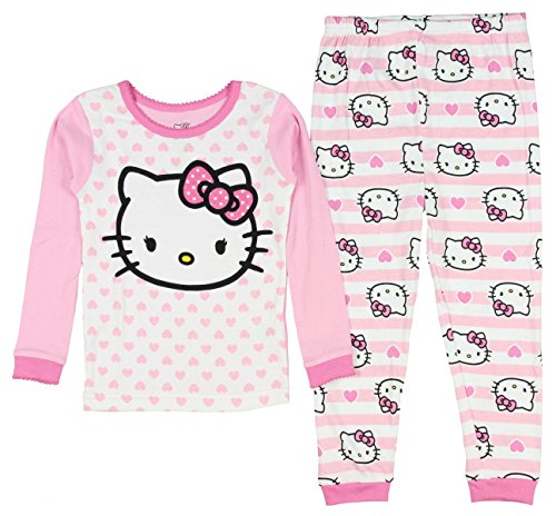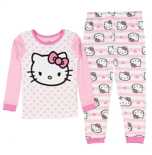 Hello Kitty is product of Sanrio from Japan. A bobtail cat with a red bow. First used on a single vinyl coin purse, she has become a recognized global character. She is adorable. This two piece long sleeve and long pant pajama set features a pink allover Hello Kitty design.Feature