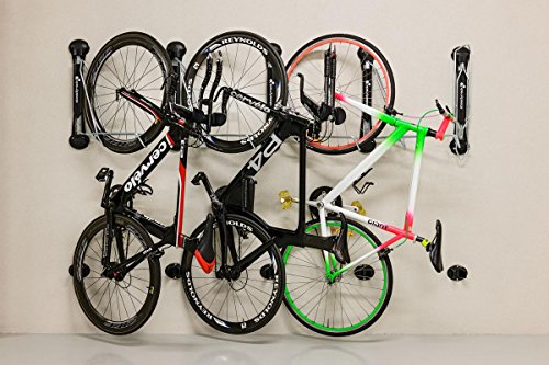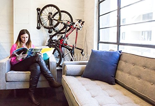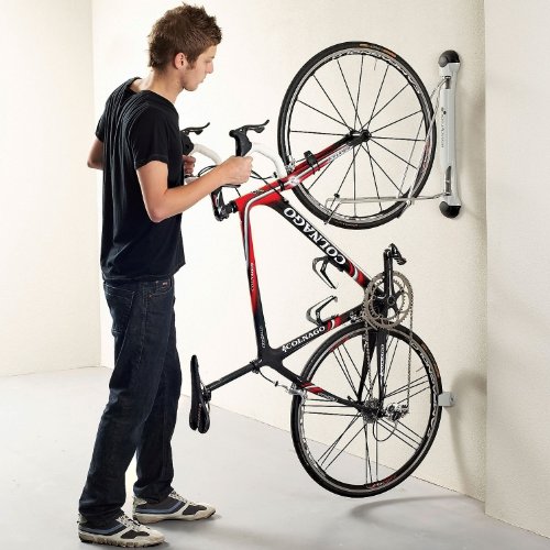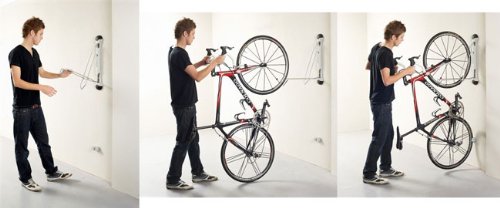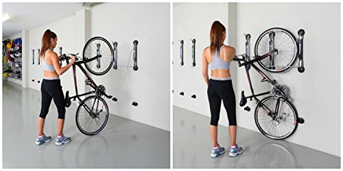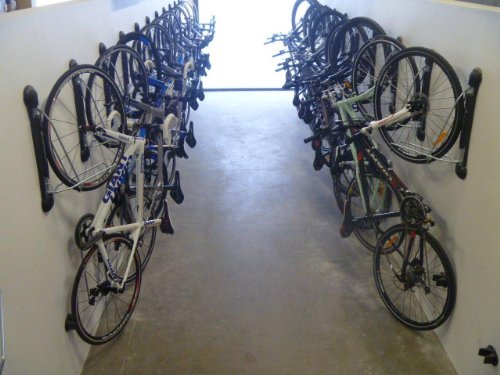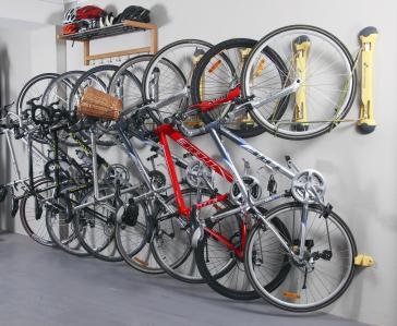 Gear Up wall and ceiling mounted racks for display and storage. - Space saving design swivels allowing bikes to be moved closer to the wall