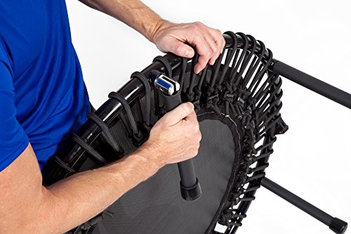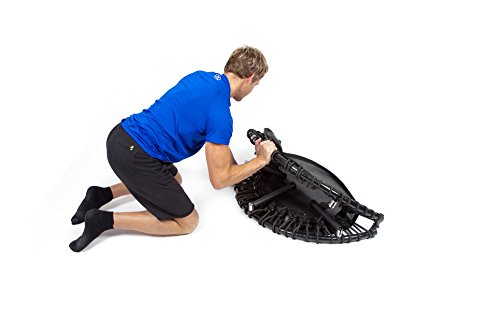 -. Feature : Extrem robust und sehr weich gefedert, geräuschärmster Rebounder auf dem Markt. 1Meter Durchmesser. / Zur Hälfte zusammenklappbar für einfaches Verstauen und leichten Aufbau, inkl. spezieller Sicherungsscharniere. Die Beine verfügen über einen starken Sprungfeder Mechanismus, der es möglich macht, diese innerhalb von Sekunden aus- und einzuklappen. Das stellt gegenüber den altmodischen Schraubbeinen einen enormen Vorteil dar, da das Gerät so wirklich nach jedem Gebrauch schnell verstaut und bei Bedarf genauso schnell wieder aufgebaut werden kann. / Enthält eine stabile Tragetasche zum einfachen Transport und kann barfuß, in Socken oder mit Sportschuhen benutzt werden. / Enthält einen speziellen Sprungzähler zur Messung der in jedem Workout absolvierten Sprünge! / FIT BOUNCE PRO - hochqualitativer mega-starker Gummiseil-Rebounder Klappbeine mit Sprungfedern zum einfachen Aufbau und zur flachgefalteten Aufbewahrung. Unser spezielles Gummiseilsystem dehnt sich weiter als Metallfedern und bremst Sie zu einer wunderbar weichen, leisen Landung auf der Matte ab. Der Fit Bounce Pro Rebounder verfügt über 30 qualitativ hochwertige Gummiseile, welche die Energie speichern, die während der Entschleunigung (Landung) aufgenommen wurde und diese in der Beschleunigung des Absprungs wieder freisetzen. Das erzeugt ein Gefühl der Schwerelosigkeit auf dem Höhepunkt des Absprunges, wie Schweben und ein müheloses Springen.
