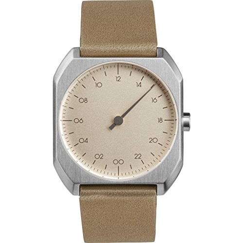 slow Mo 09 - Swiss Made one-hand 24 hour watch - Silver with beige leather band