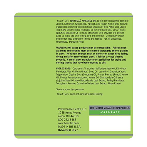 Studio : Bon Vital' Publisher : Bon Vital' Binding : Misc. Product Description Bon Vital, the #1 preferred brand of massage therapists focusing on professional quality products, brings you a line of massage products made with all-natural ingredients that can be used for all massage modalities and techniques. The Bon Vital Naturale line of creme, lotion, gel, and oil leverages the benefits of earth-friendly ingredients to provide intense hydration to dry skin and lock in moisture. The unscented, water-dispersible formulas are ideal for blending with Bon Vital essential oils to create the ultimate aromatherapy massage experience. 0