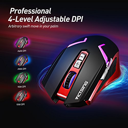 Adjustable professional 4 DPI levels: 800, 1200, 1600 and 2400. Perfectly control the mouse moving speed at your pleasure.