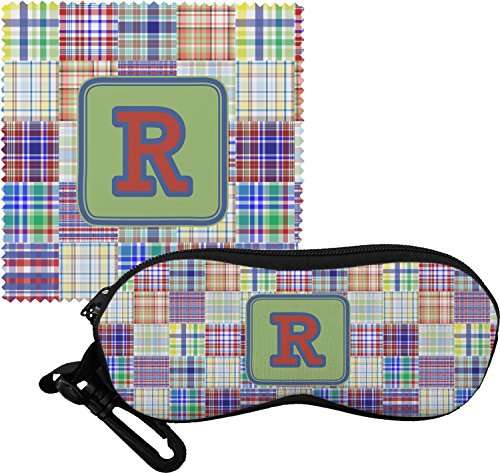 -. Title : Blue Madras Plaid P.R.Int Eyeglass Case & Cloth (Personalized)