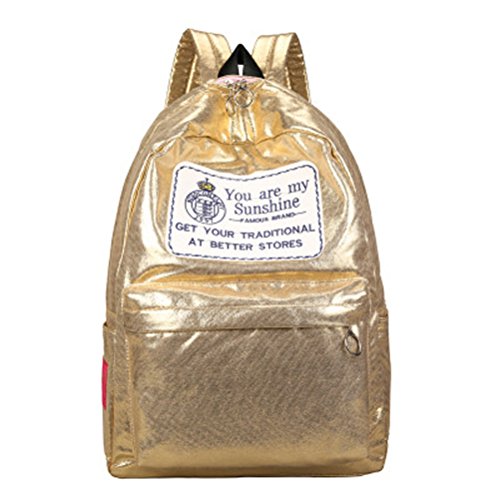 -. Feature : soft laser synthetic leather, polyester lining / Letter Patch pattern / perfect to use when going to school, traveling, going out, shopping / 1 main pocket,1 interlayer pocket, Outer strcture: 1 front bag, 2 side pockets Double zipper closure and adjustable padded shoulder strap, Perfet school bag, roomy enough for all your stuff, can hold books,lunch box,ipad mini,laptop / Size: 11.8*5.5*15.4in