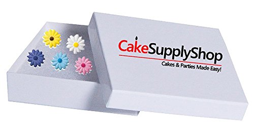 CakeSupplyShop Small Yellow Blue Pink White Daisies Flower Assortment Edible Sugar Decorations for Cakes and Cupcakes/Food Decorations 16 count