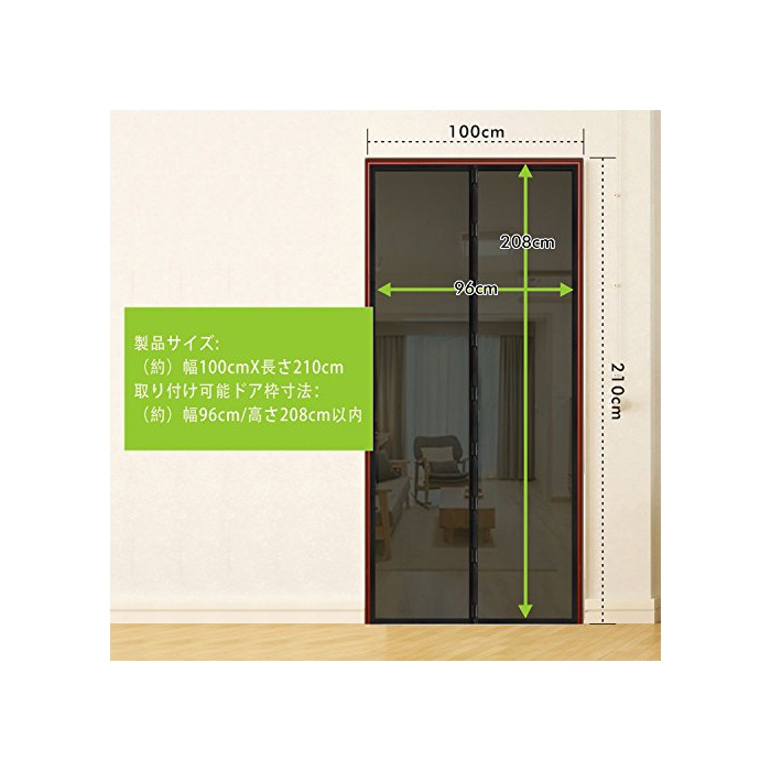 원본상품명:Bluesim 玄用 網 よけ 蚊取り 網カテン マグネット付き 自動で閉まる ドア用網 100cmX210cm ブラック