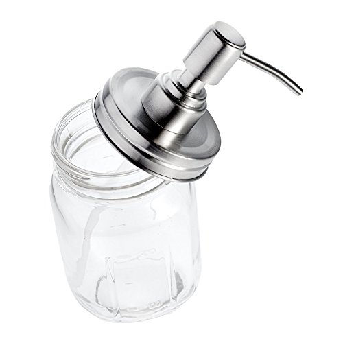 Easily transfer regular mouth jars into soap dispenser with pump lid insert by thread fasteneronto the pump housing through stainless steel insert and finger tighten.