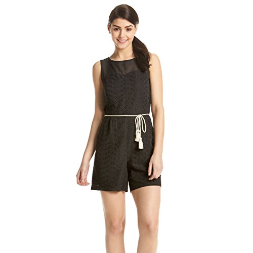 Studio : Kensie Women's Collection Publisher : Kensie Women's Collection Binding : Apparel Product Description A delicate, eyelet chiffon romper with a playful lace detail at the top. Features a sleeveless design and rope at waist that helps create a flattering figure. 0