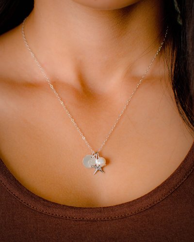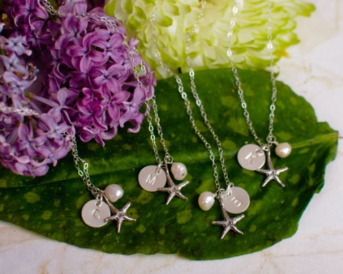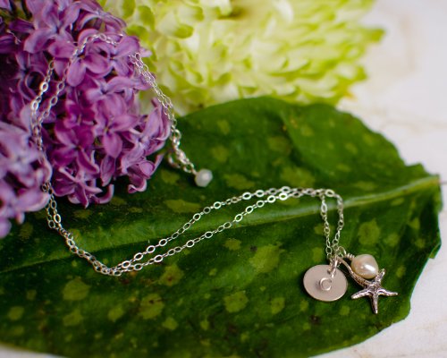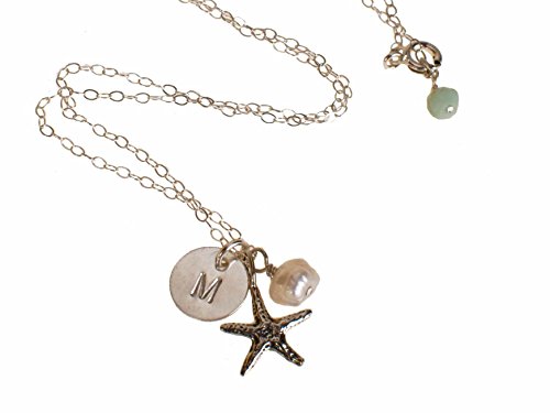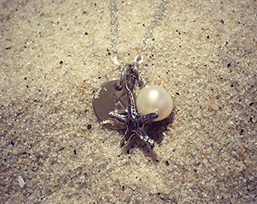 -. Title : Initial Necklace with Starfish and Cultured Pearl - Personalized Beach Jewelry