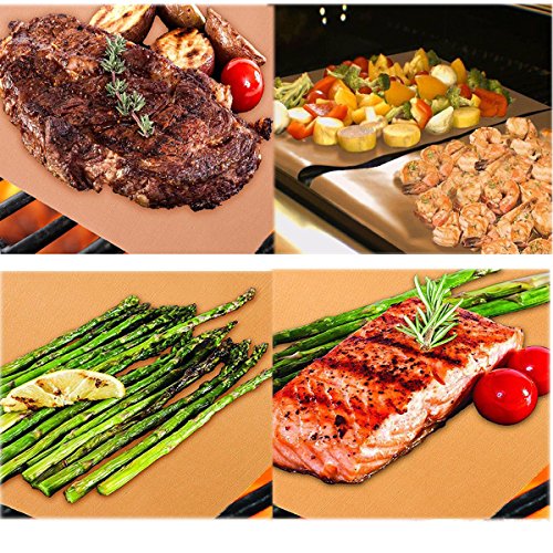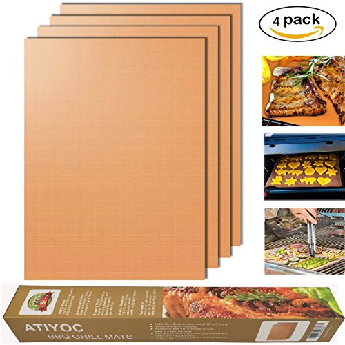 Atiyoc Copper Grill Mat, Set of 4 Non-stick and Heat Resistant Baking Mats for Charcoal, Electric and Gas Grill