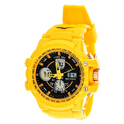 EVERLAST SPORT MEN'S ANALOG DIGITAL ROUND WATCH WITH YELLOW RUBBER STRAP
