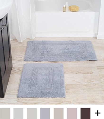 Bedford Home 100% Cotton 2 Piece Reversible Rug Set - Silver