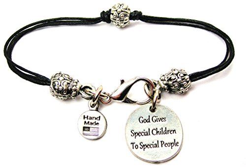 -. Title : God Gives Special Children To Special People Pewter Charm on a Pewter Beaded Black Waxed Cord Bracelet By Chubby Chico Charms, Fits up to 8 Inches